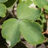 The eastern columbine leaves are ternately compound meaning 3 leaflets. The plant has basal leaves and cauline (stem) leaves that are alternate. Both the basal and cauline leaves are morphologically similiar. Basal leaves generally have longer petioles (leaf stalks) than the cauline leaves.