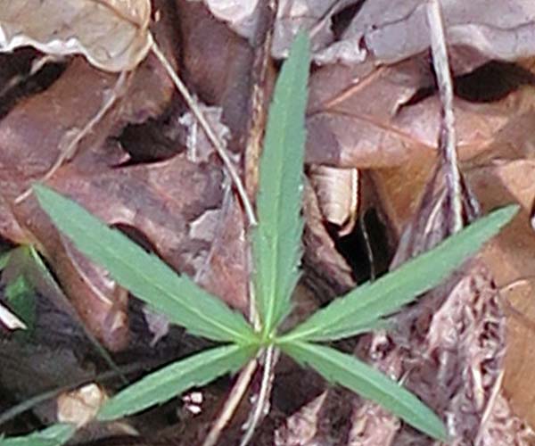 Cardamine concatenata, cutleaf toothwort, is a small native perennial herbaceous plant that lives in the woods and blooms in spring with white to pinkish flowers. It is a true spring ephemeral. It blooms before the trees leaf out and the above ground parts are gone in 4 to 5 weeks.